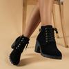 Новые зимние женские сапоги, модные, с круглым носком, запоминающиеся, однотонные, замшевые, с боковой молнией, женские, на высоком каблуке, короткие сапоги — купить товар онлайн с бесплатной доставкой по всему миру!