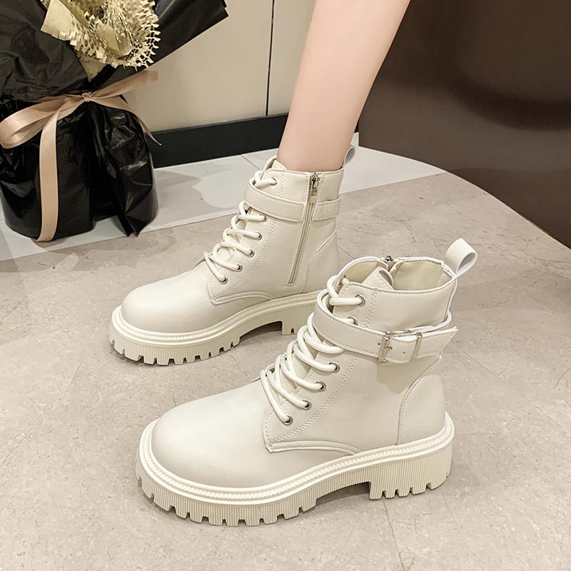 Новые женские туфли весна и осень высокое качество круглый носок средний каблук шнуровка однотонные женские короткие ботинки с боковой молнией