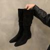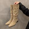 Женские ковбойские сапоги до середины икры, новые ретро-сапоги с острым носком и толстым каблуком, ковбойские сапоги в стиле вестерн, женская обувь, женские сапоги для верховой езды