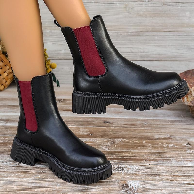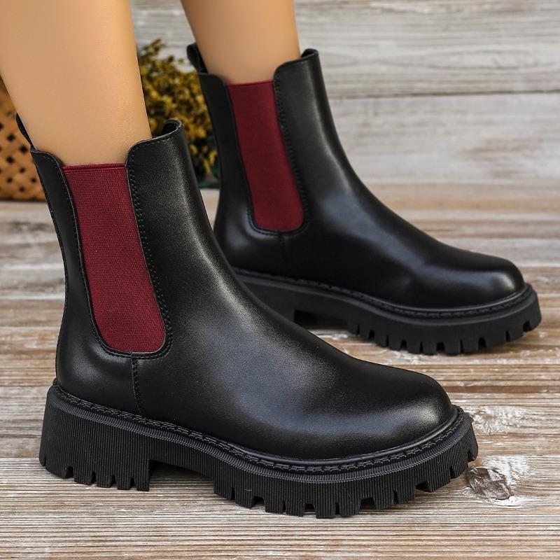 Новые модные универсальные цветные женские ботинки телесного цвета с круглым носком и толстой подошвой без шнуровки, женские ботинки на весну и осень