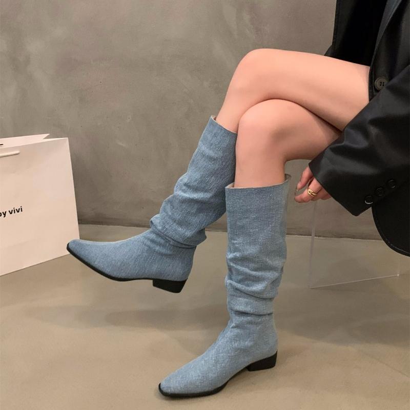 Зимние высококачественные женские сапоги с острым носком, однотонные, удобные и универсальные, на толстом каблуке, женские сапоги высокой моды