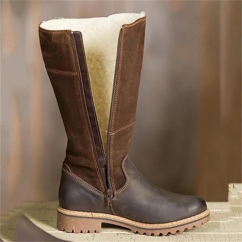 Женские высокие сапоги из кожи, флок, зимние, плюшевые, теплые, до колена, роскошные женские туфли на плоской подошве в стиле пэчворк, повседневные женские зимние сапоги
