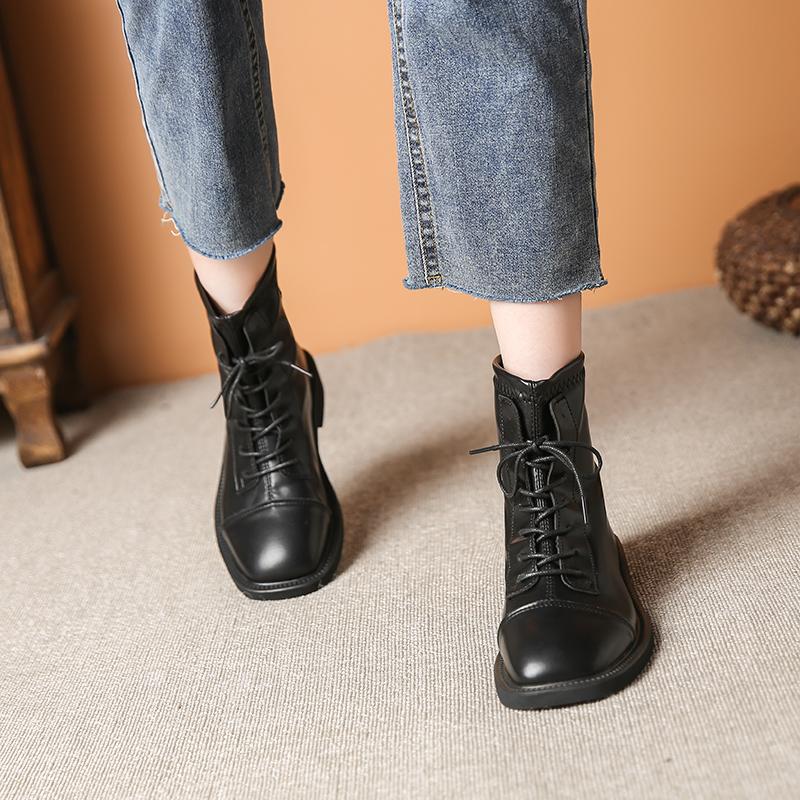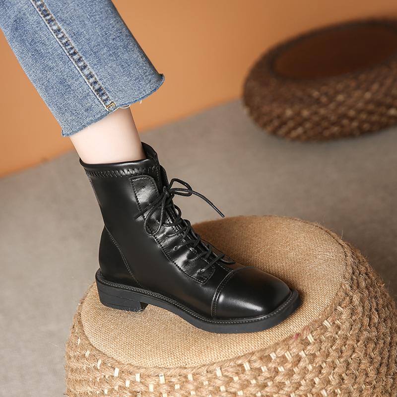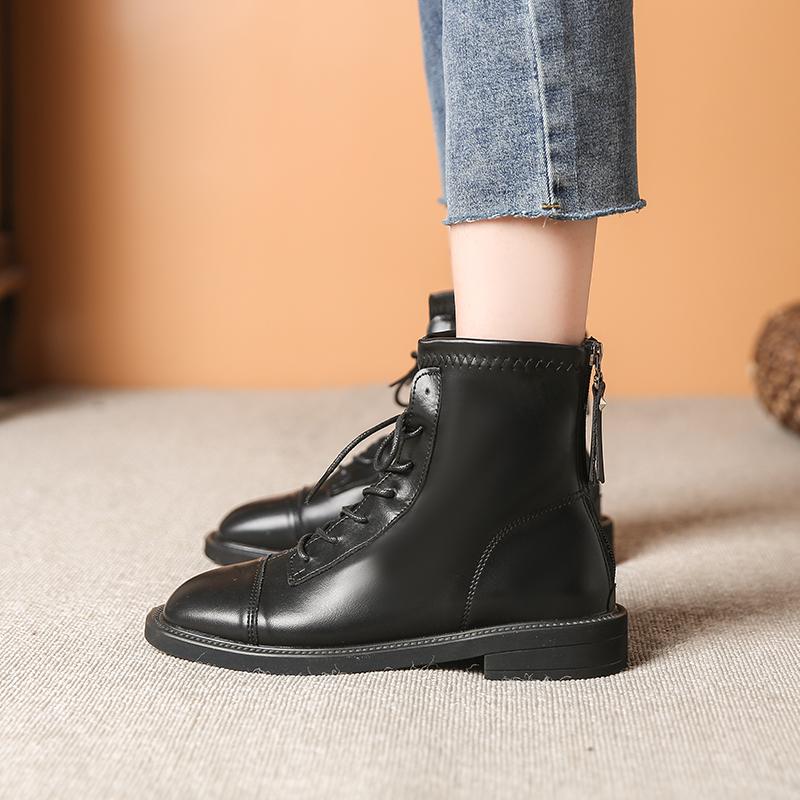 Горячие продажи однотонных британских коротких ботинок, мотоциклетные ботинки, осенние и зимние универсальные женские ботинки из мягкой кожи с подкладкой