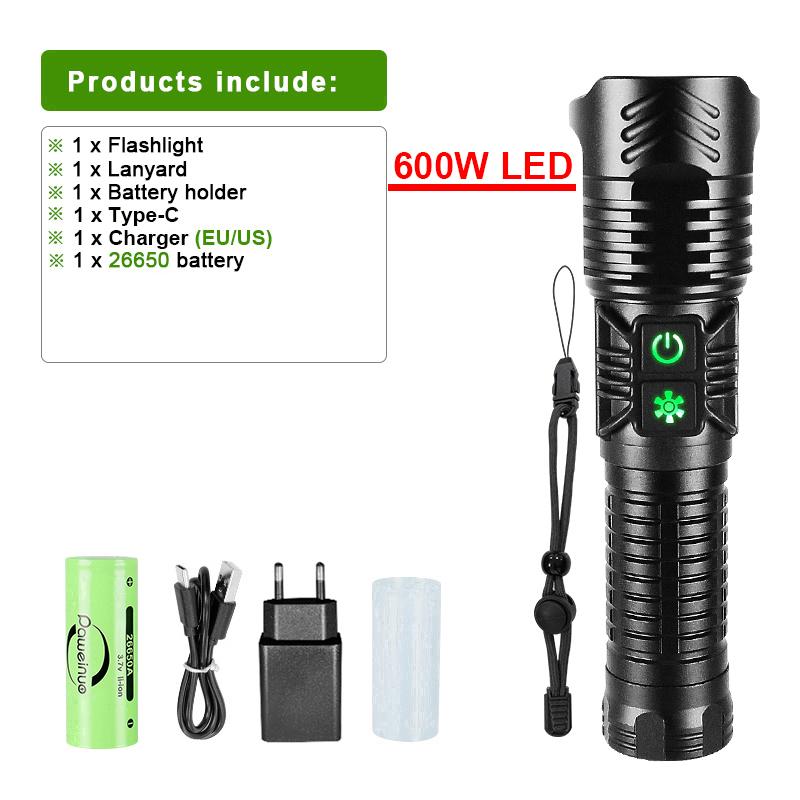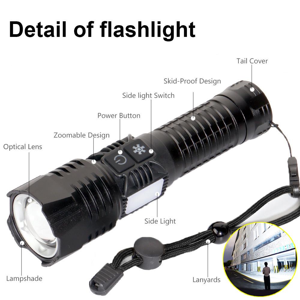 6000LM мощный светодиодный фонарик 18650 фонарь USB перезаряжаемый COB светодиодный фонарик 2000M дальний выстрел кемпинговый фонарь