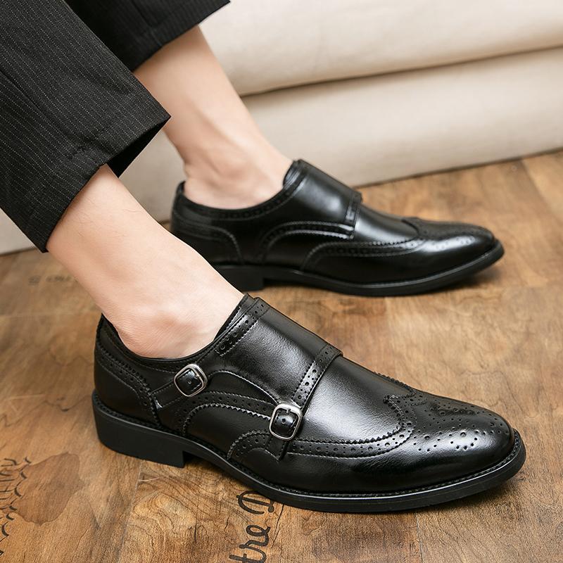 Мужские кожаные туфли с пряжкой, цельные, формальные, мужские туфли, увеличивающие рост
