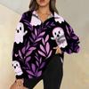 Женская мода повседневная толстовка с длинным рукавом и принтом на молнии с высоким воротом и заниженными плечами