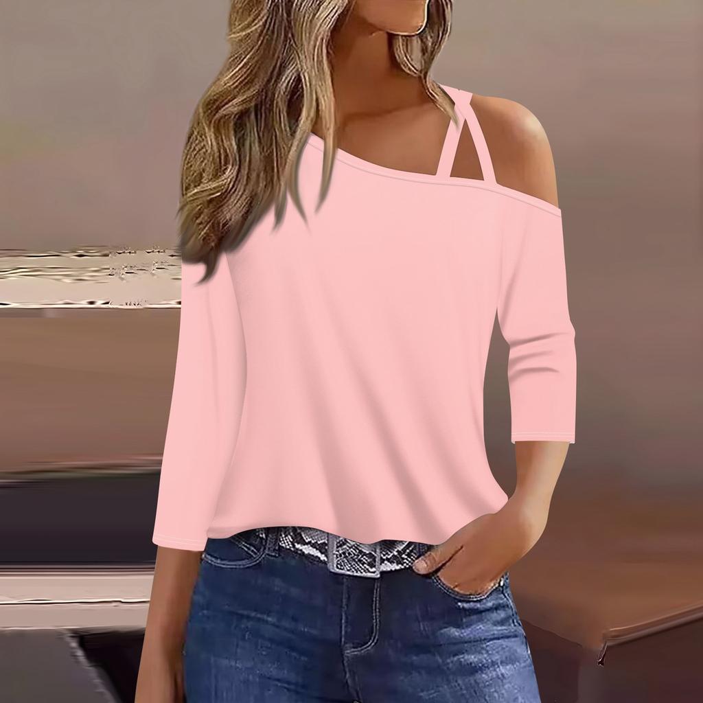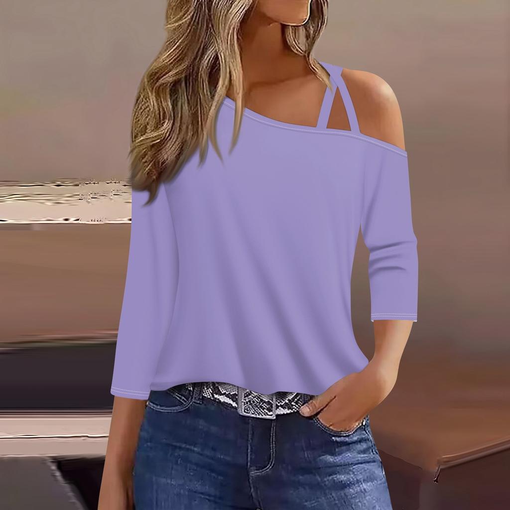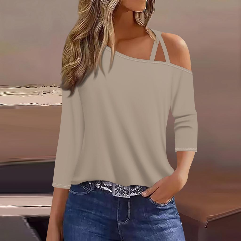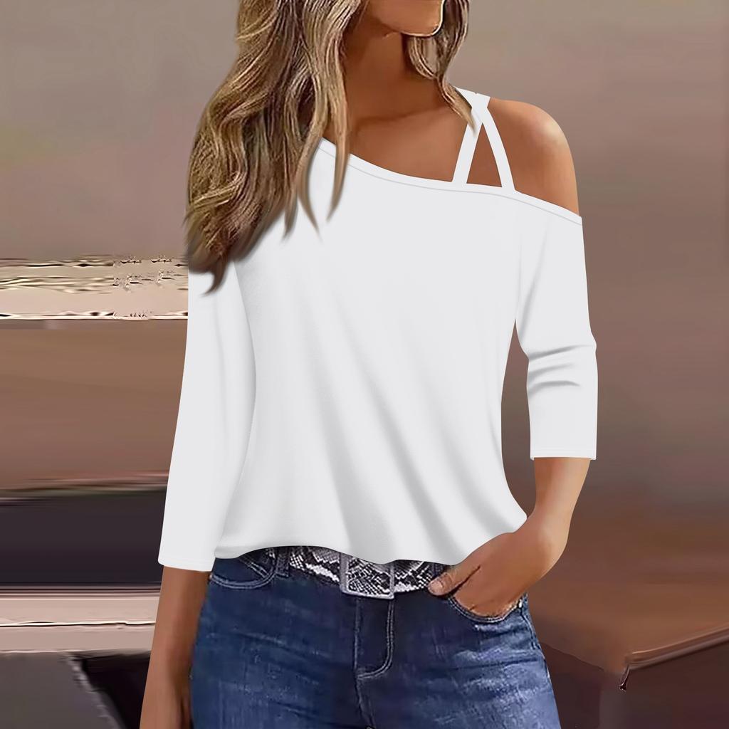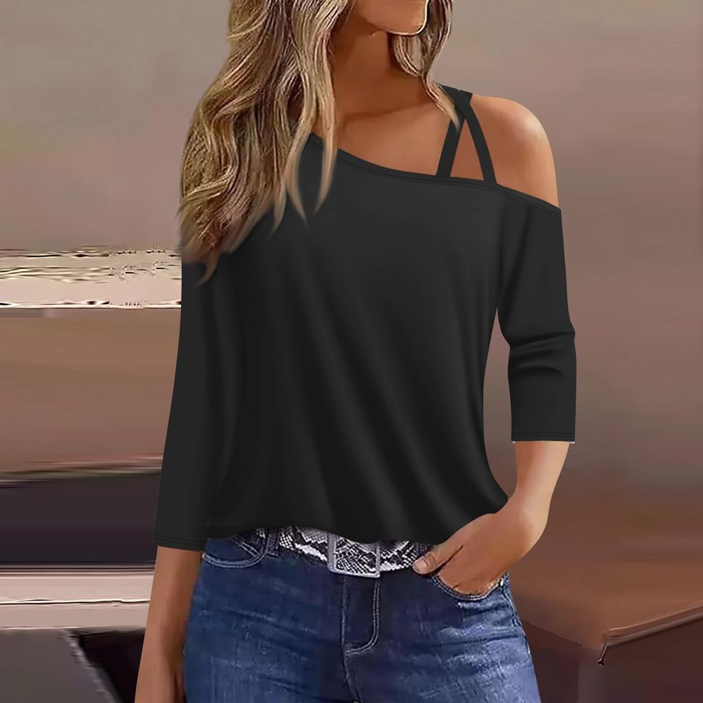 Женская футболка Футболка с принтом Рукав 3/4 Повседневные Выходные Мода Классический с открытыми плечами Обычный Топ