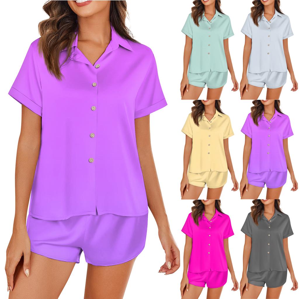 Женская шелковая пижама с коротким рукавом из сатина, комплект из 2 предметов, домашняя одежда на пуговицах — купить товар онлайн с бесплатной доставкой до всему миру!