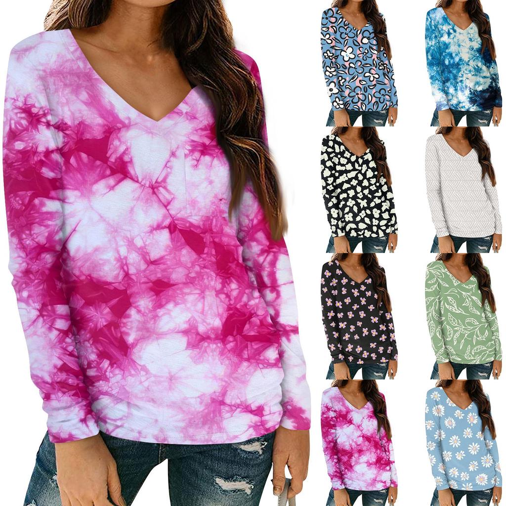 Женская мода повседневная блузка с длинным рукавом и цветочным принтом, V-образным вырезом и карманами — купить товар онлайн с бесплатной доставкой по всему миру!