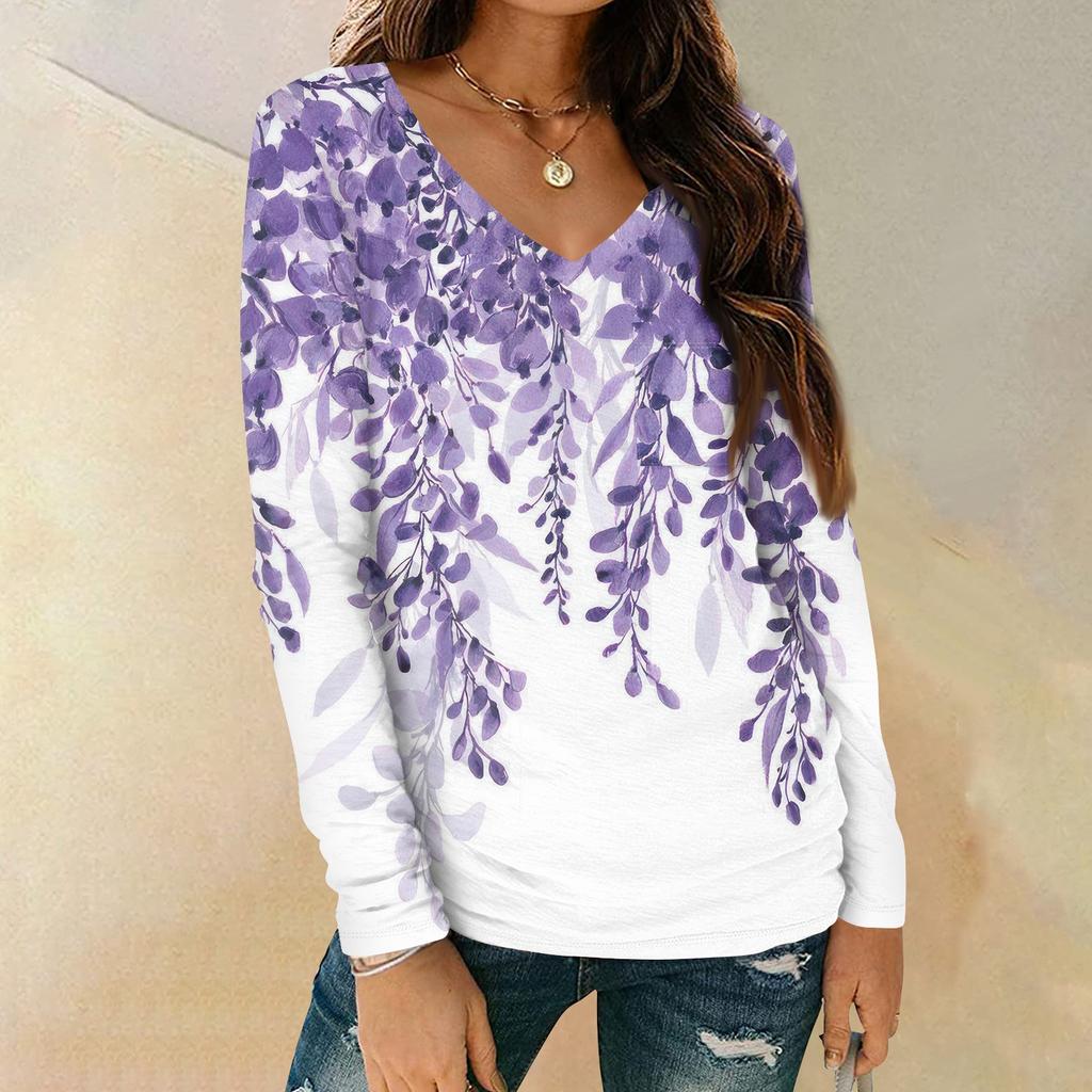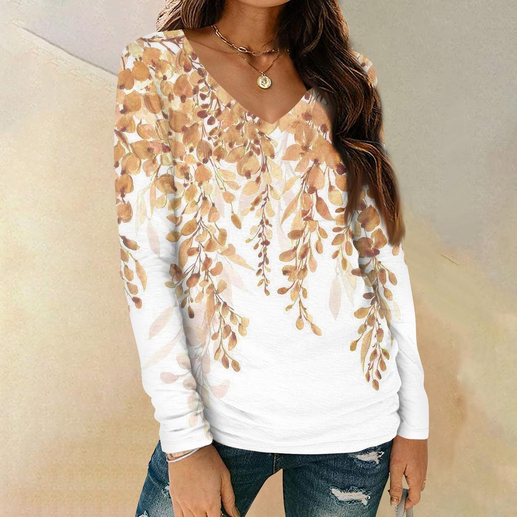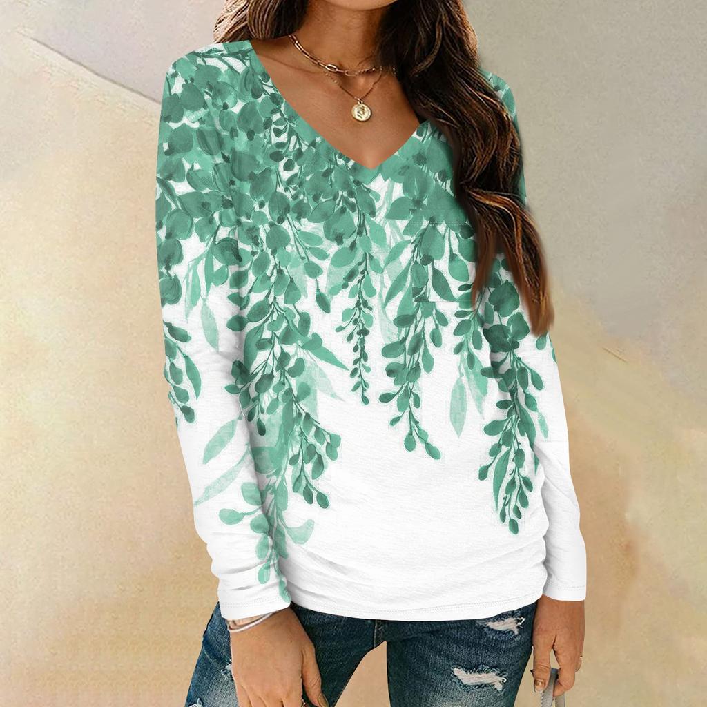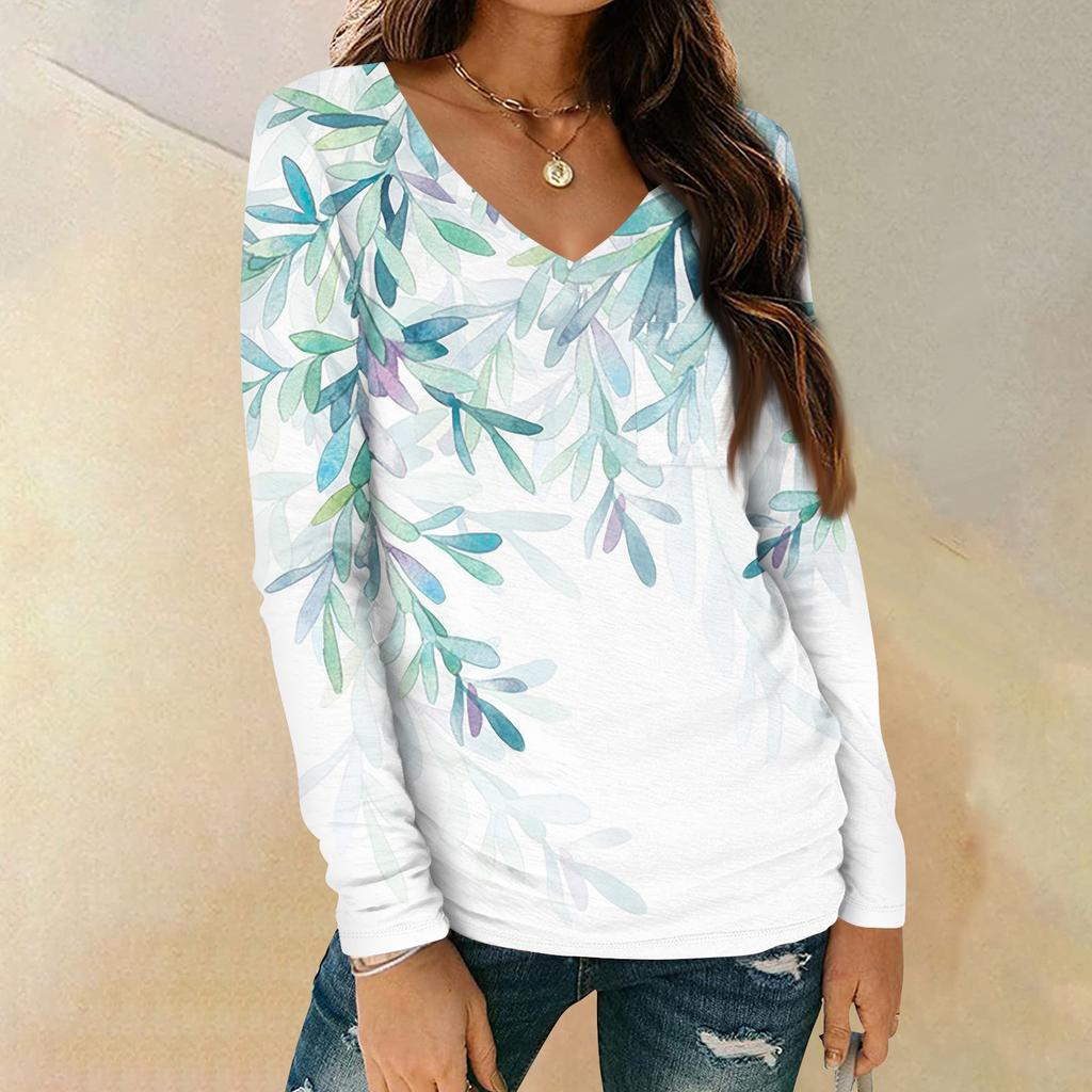 Женская мода повседневная блузка с длинным рукавом и цветочным принтом, V-образным вырезом и карманами