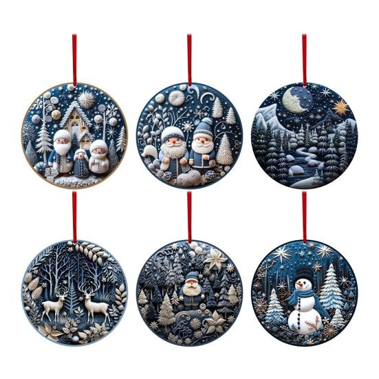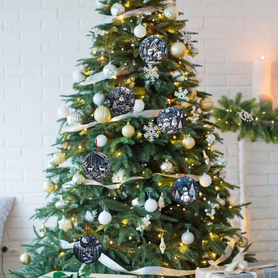 Украсьте свою рождественскую елку этим изысканным набором из 6 подвесных украшений.. Изготовленное из прочного акрилового материала, каждое украшение имеет сложную двустороннюю 2D-цифровую графику, что придает ему реалистичный вид.. Эти украшения высотой около 8 см идеально подходят для маленьких и средних деревьев.. Добавьте немного очарования в ваш праздничный декор, украсив елку этими очаровательными украшениями..