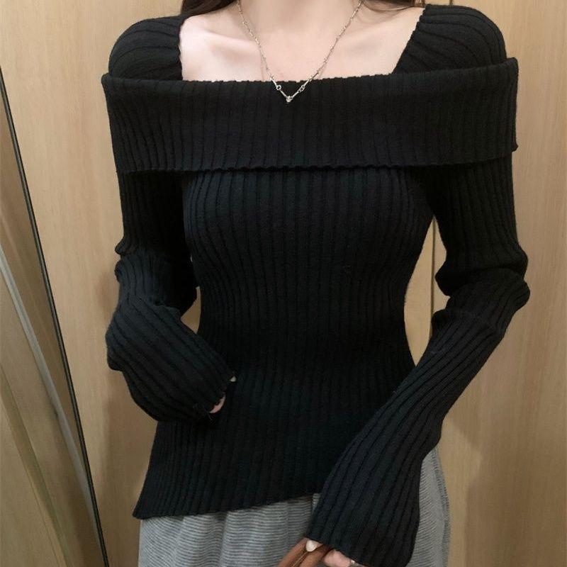 Женский вязаный свитер с квадратным вырезом, осенне-зимний, тонкий вязаный базовый слой, пуловер с длинными рукавами, нерегулярный вязаный топ