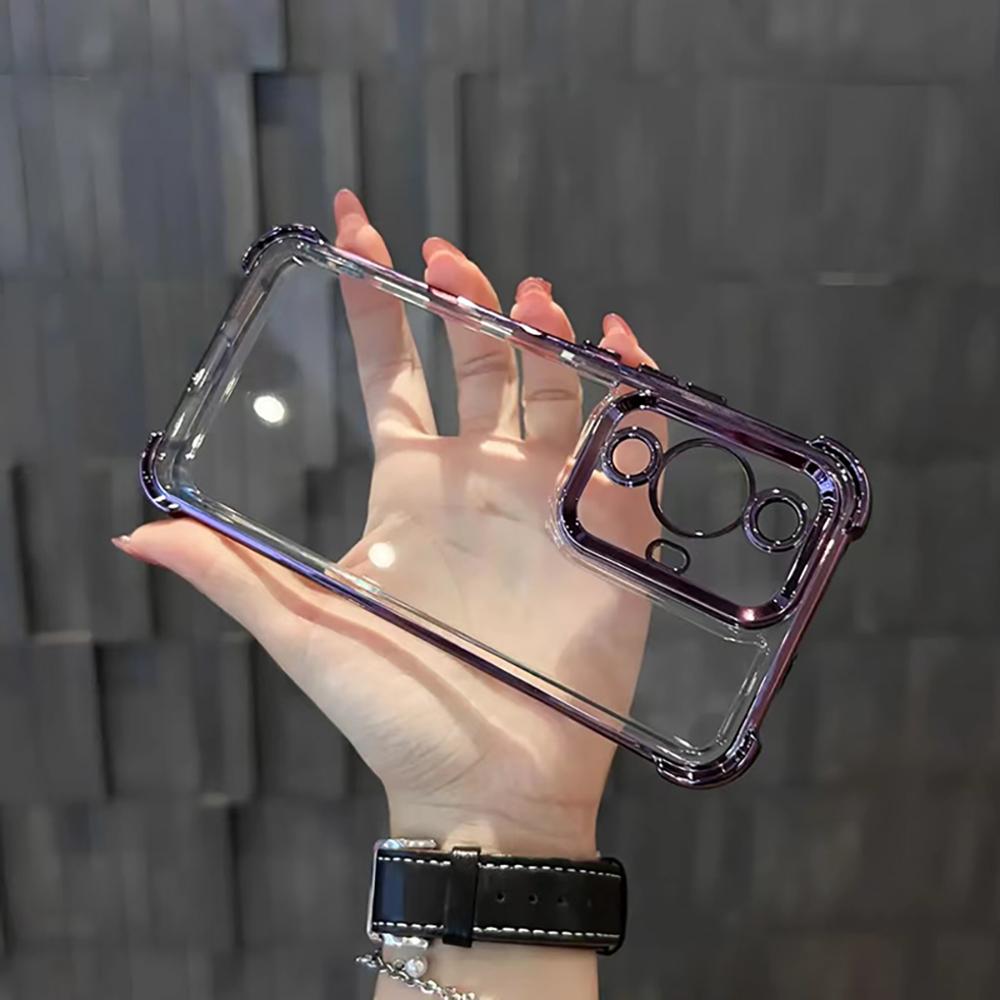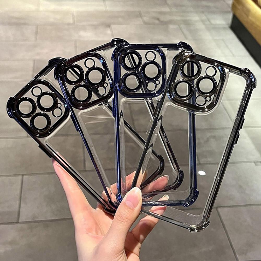 Прозрачный чехол для телефона с защитой от падения для Samsung Galaxy S24 Ultra S23 FE S22 S21 S20 Plus + 4G 5G Мягкий TPU с гальваническим покрытием, прозрачная защитная задняя крышка для линз