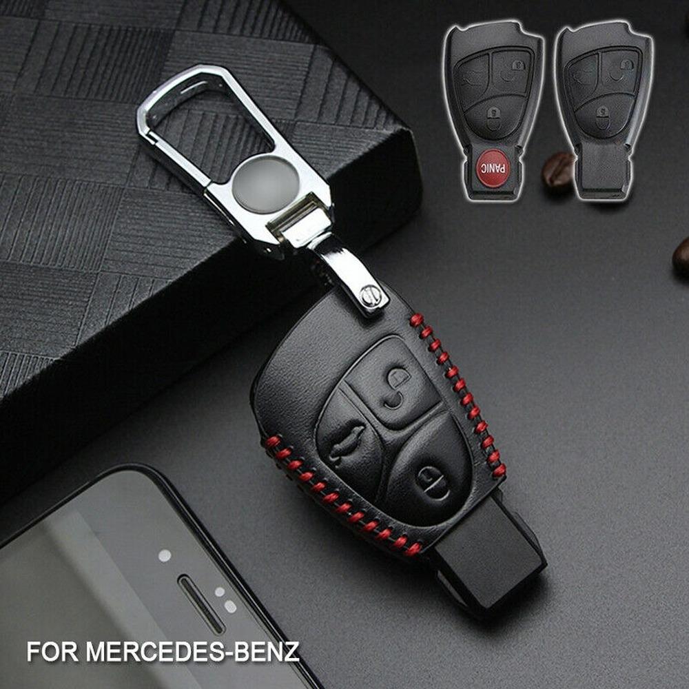 Кожаный брелок с дистанционным управлением от автомобиля, чехол-держатель в виде ракушки для Mercedes Benz CBER Class GL CLS CLK SLK W203 W211 W204, цепочка с 3 кнопками