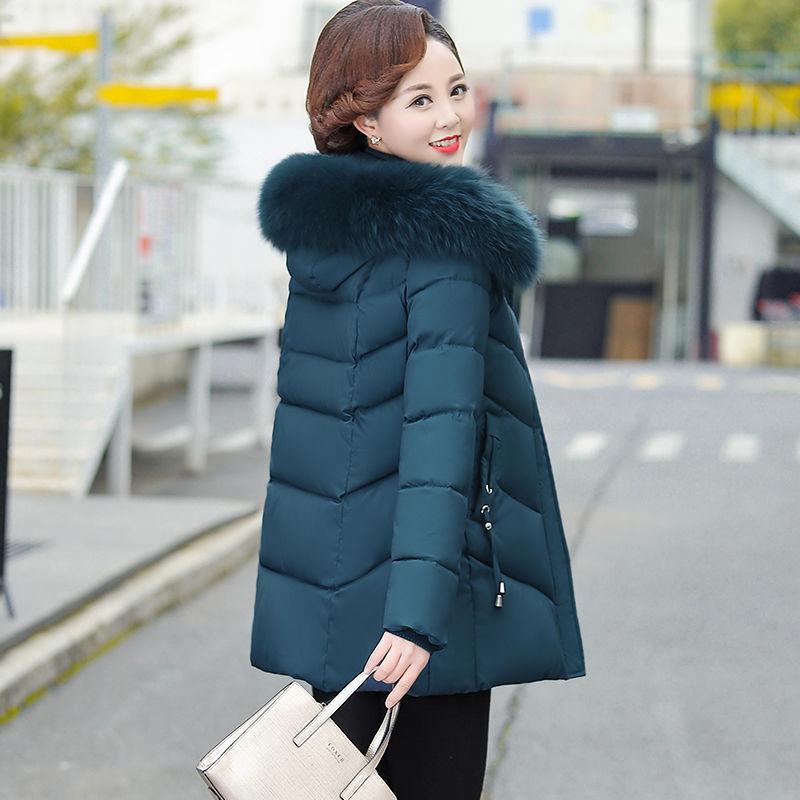 Зимняя женская элегантная куртка с длинными рукавами больших размеров средней длины