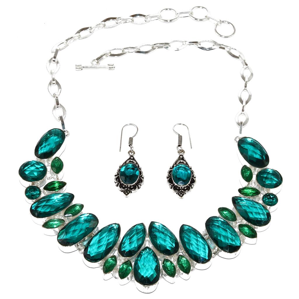 Размер Hugh Facited Chrome Diopside Handcrafted Jewelry ожерелье серьги 16-18''