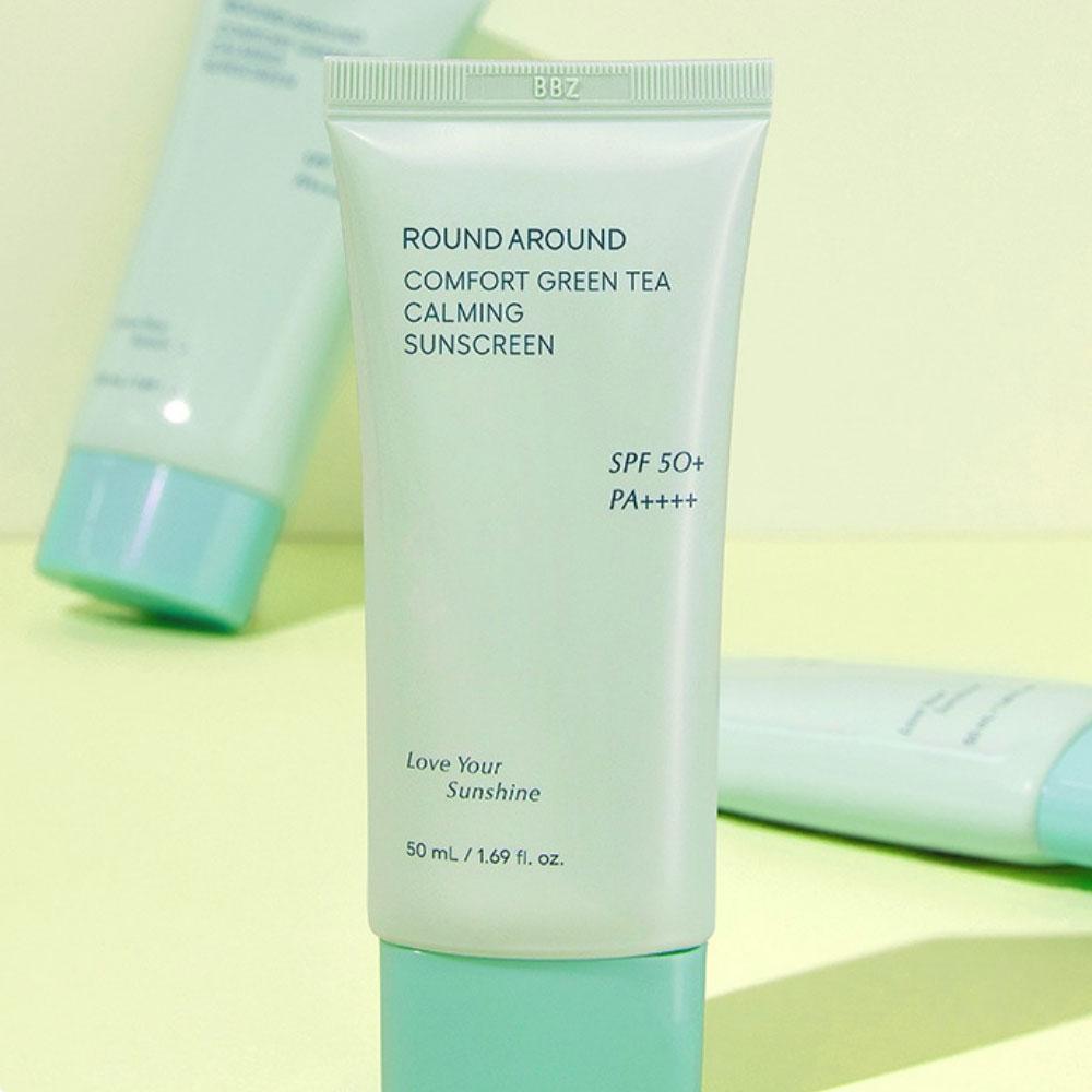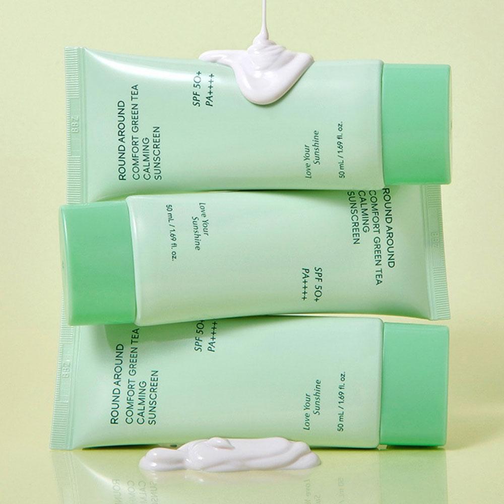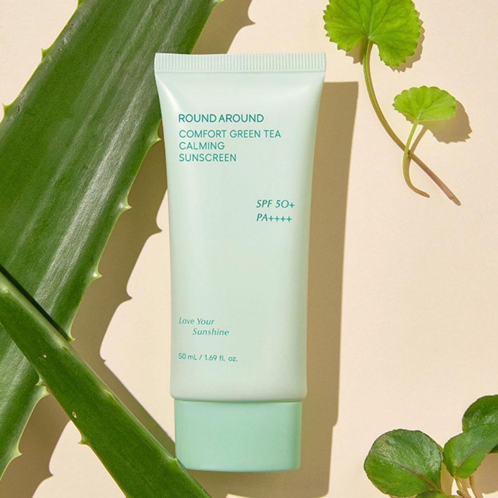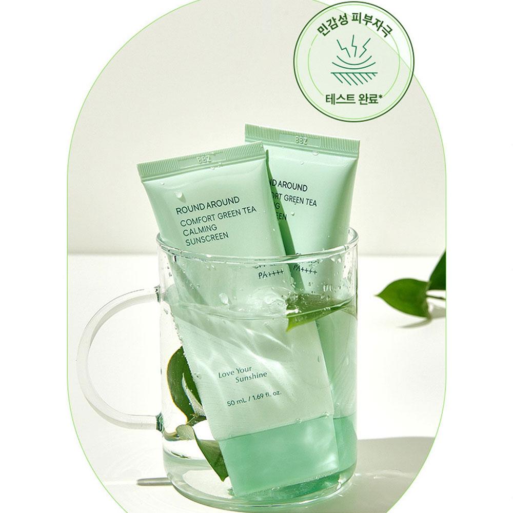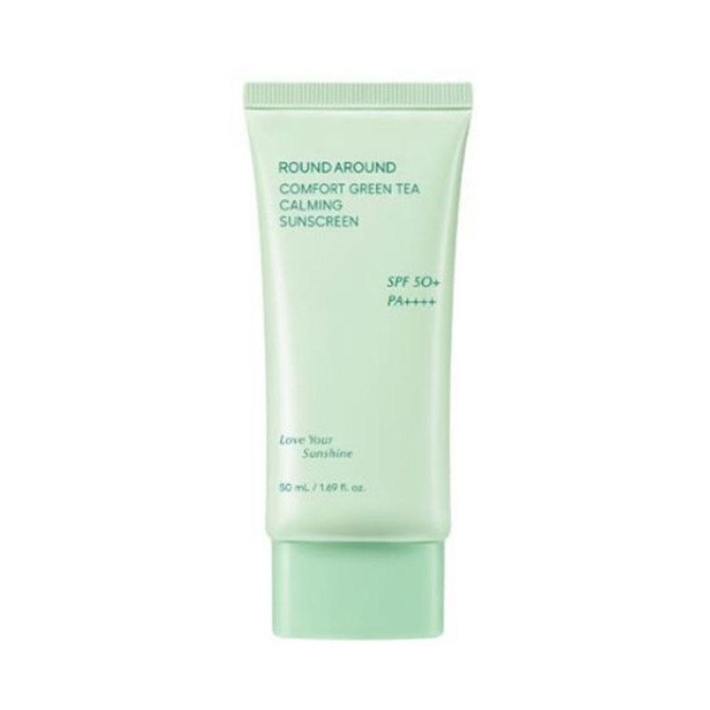 Round Around Comfort Успокаивающий солнцезащитный крем с зеленым чаем 50 мл (SPF50 +)