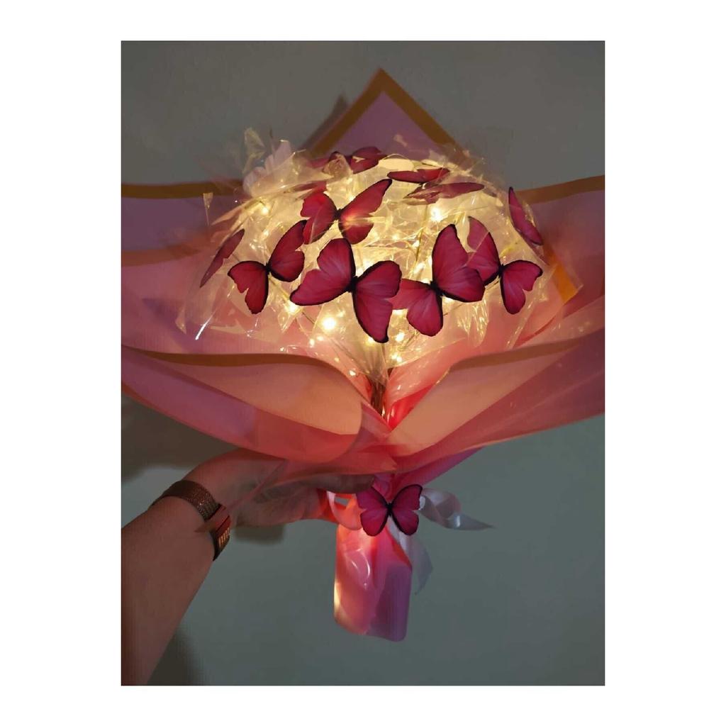 Букет бабочек со светодиодной подсветкой, розовый веер в подарок для влюбленных, друзей и мам
