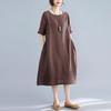 Хлопок лен однотонные винтажные платья лето осень одежда женщины повседневное платье средней длины