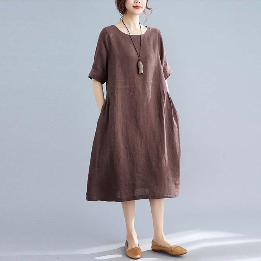 Хлопок лен однотонные винтажные платья лето осень одежда женщины повседневное платье средней длины — купить товар онлайн с бесплатной доставкой по всему миру!