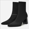2024 зимние сапоги-носки женские туфли остроносые вязаные эластичные сапоги женские сапоги модные толстые каблуки женские короткие сапоги на высоком каблуке