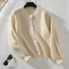 Мода 2024 года осень и зима однотонный однобортный вязаный кардиган женская одежда европейский и американский свободный свитер с длинными рукавами куртка