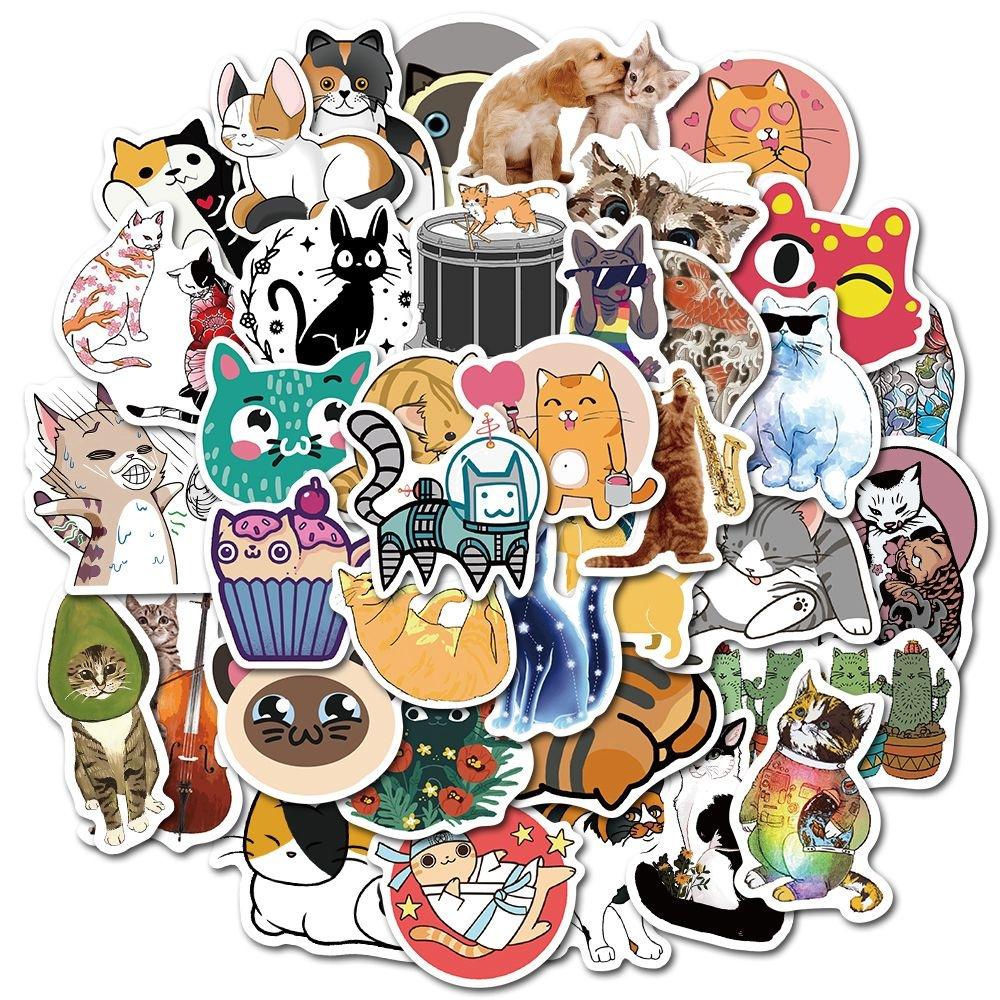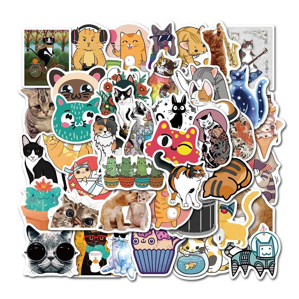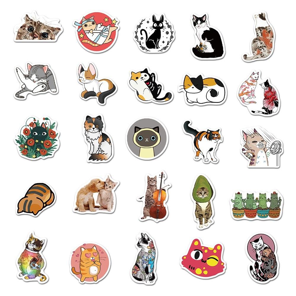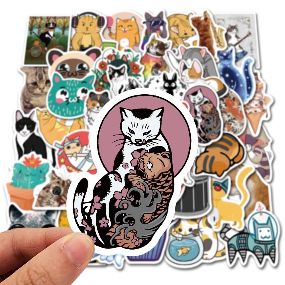 50 шт., милые самурайские кошки, татуировки, наклейки с изображением кота для скрапбукинга, ноутбука, ПК, телефона, водонепроницаемые наклейки для декора