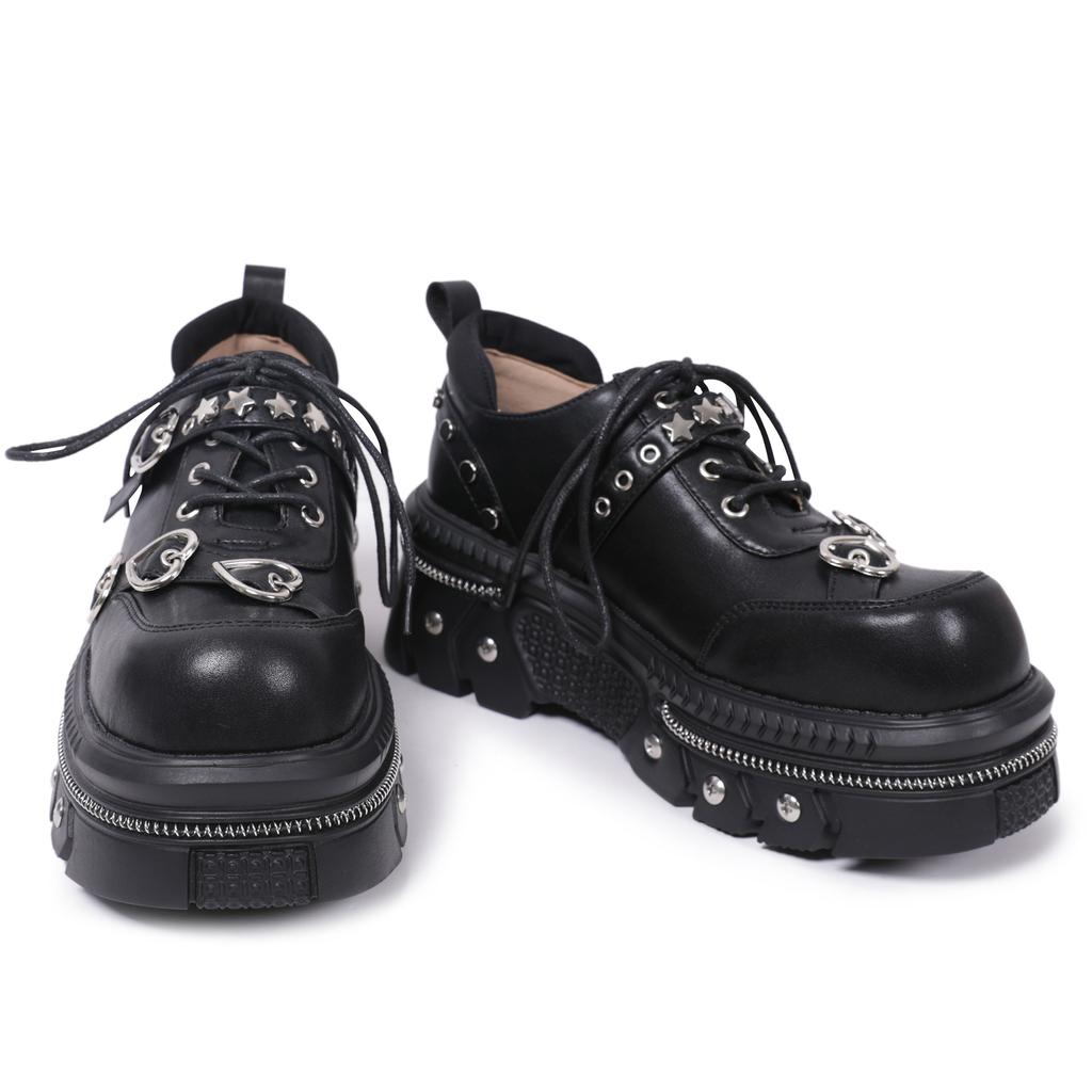 Оригинальные туфли в стиле ретро для рок-модниц на толстой подошве с глубоким вырезом и металлическими шнурками, одинарные туфли 2024 года, новый выпуск