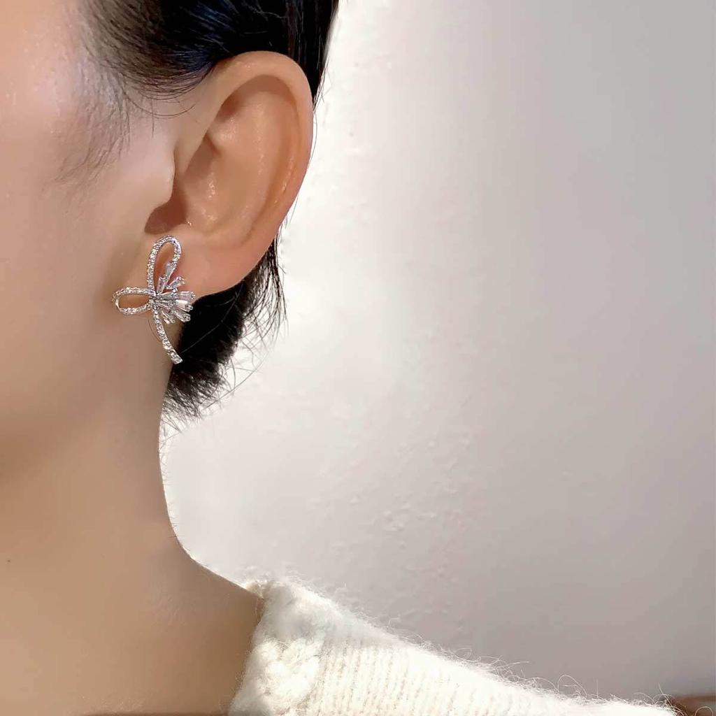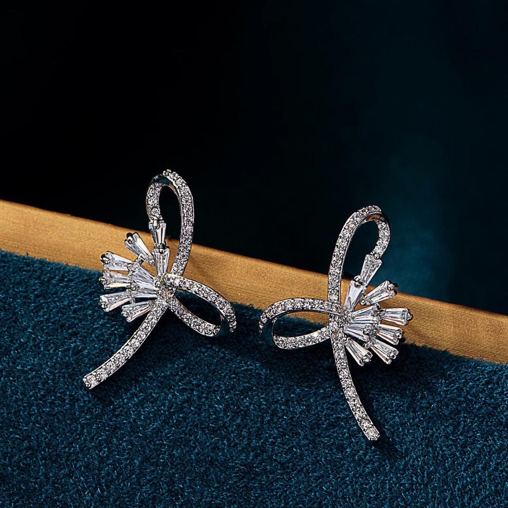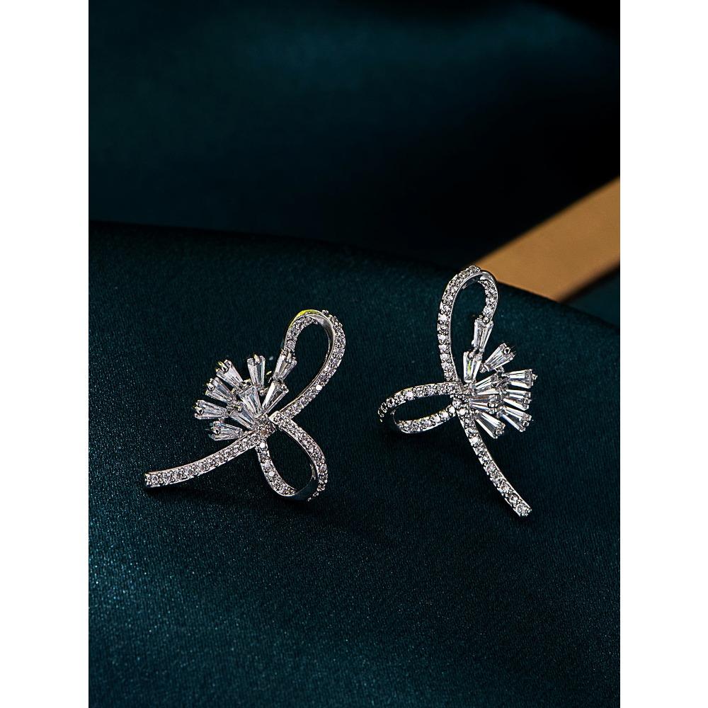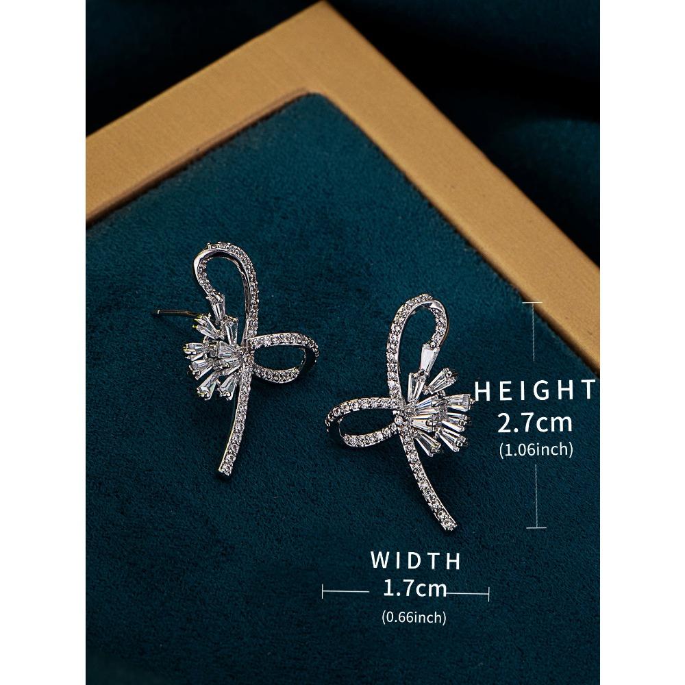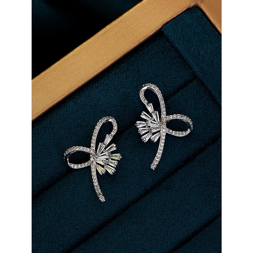 Серьги-гвоздики в форме банта, микро-инкрустированные геометрические квадратные серьги из циркония, модные индивидуальные простые серьги в стиле «холодный»