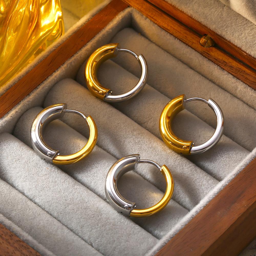 Серьги Trends двухцветные сращивающиеся круглые простые и холодные из титановой стали с покрытием из настоящего золота 18 карат, универсальные серьги премиум-класса