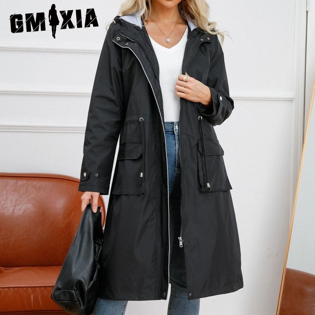 GMXIA Женские однотонные принтованные осенне-зимние куртки и пальто с капюшоном и полосатой подкладкой прямого кроя с длинным рукавом