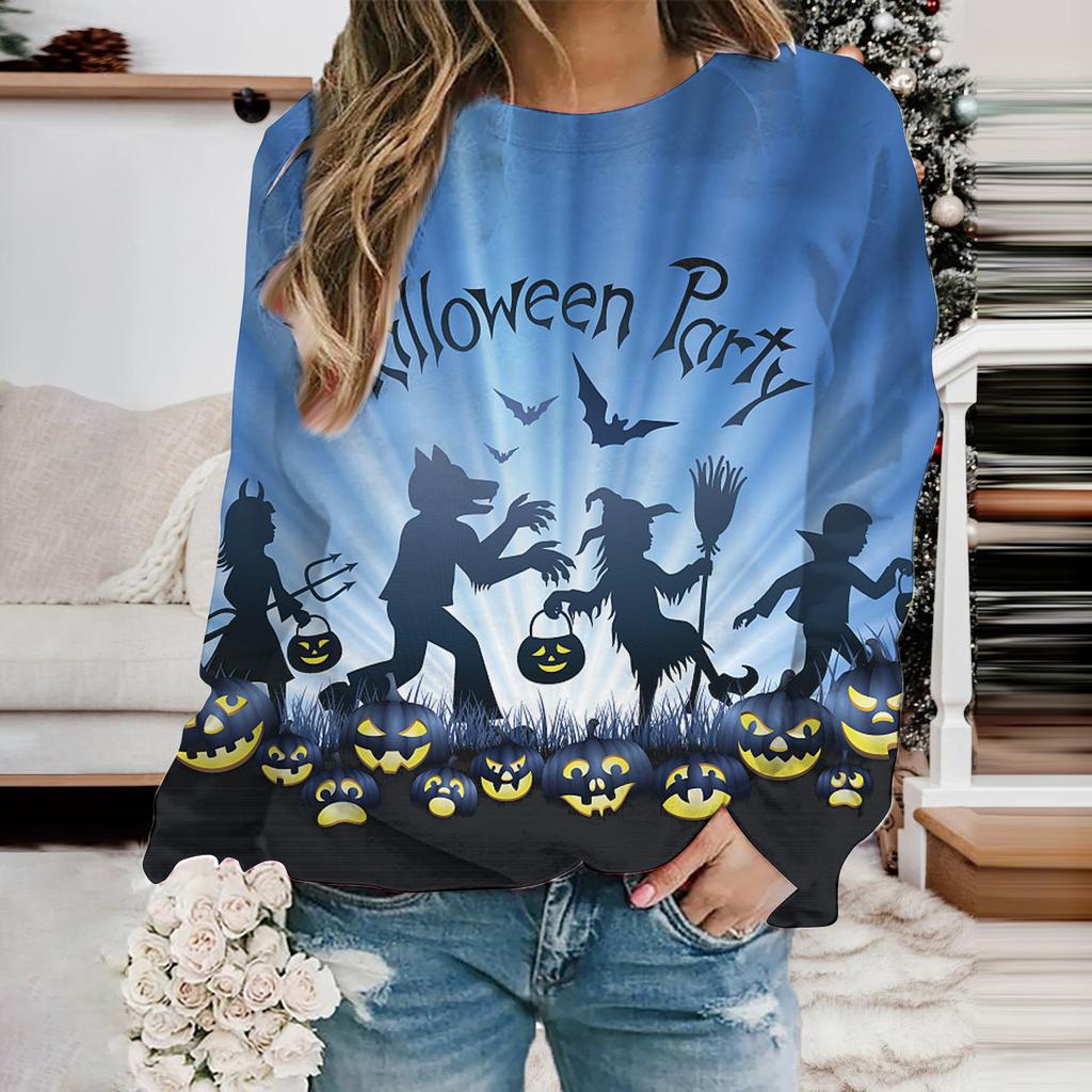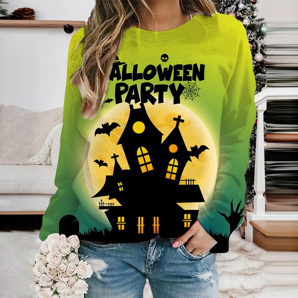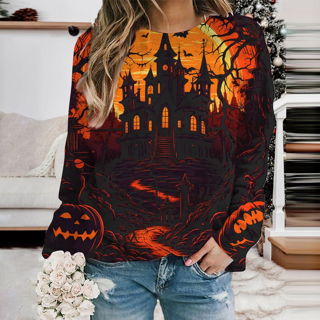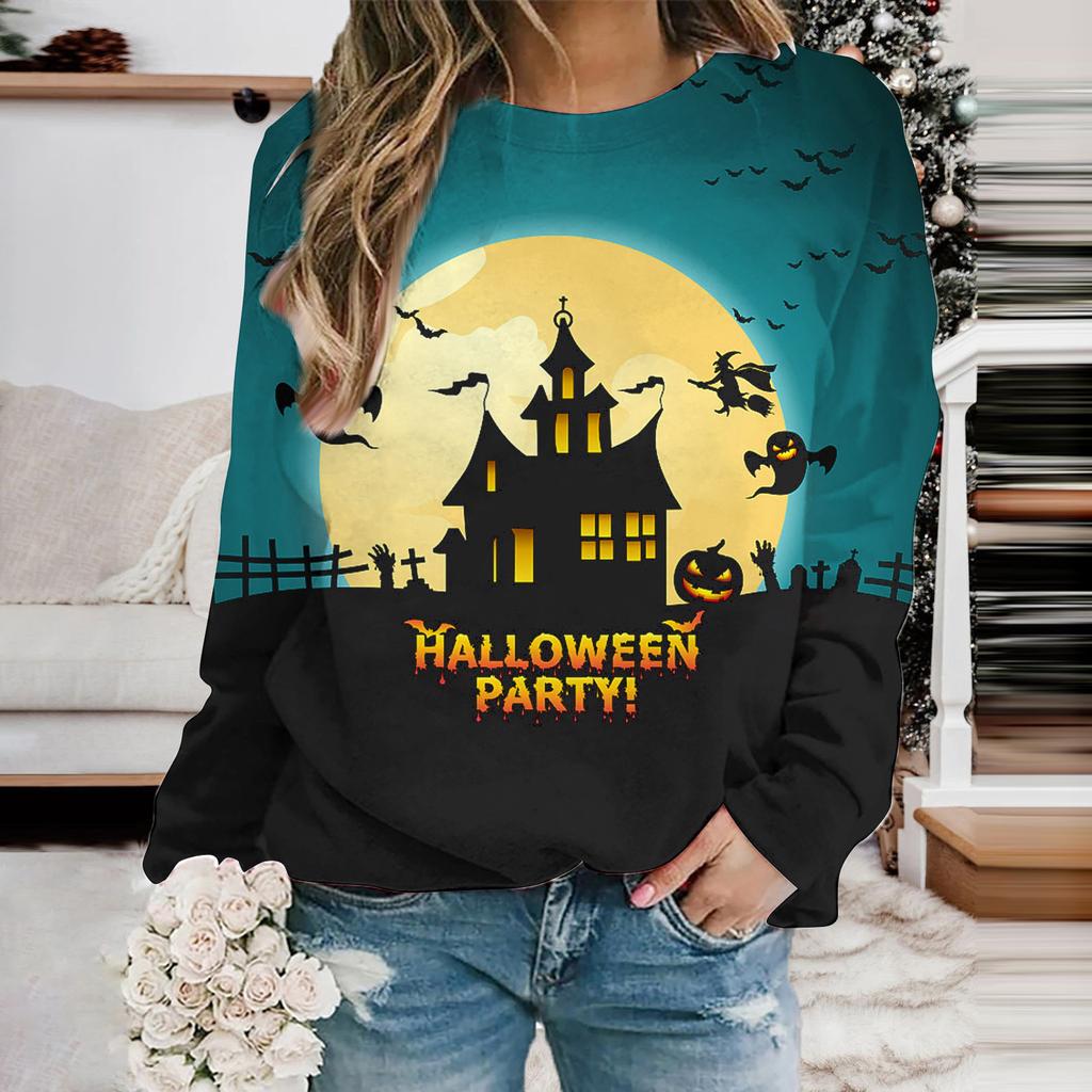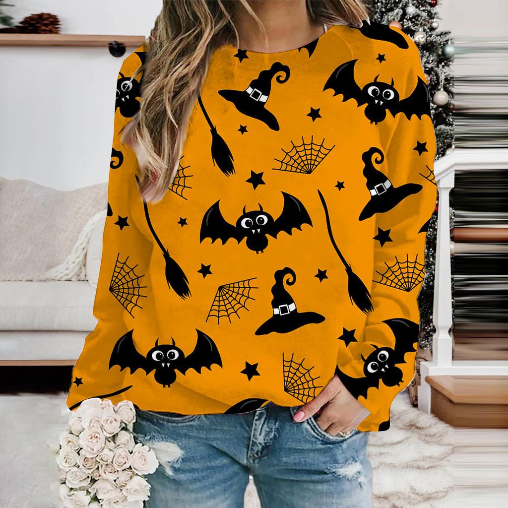 Женская мода толстовка с капюшоном Хэллоуин Призрак Летучая мышь Принт Толстовки Длинные рукава O-образный вырез Толстовки Женские топы