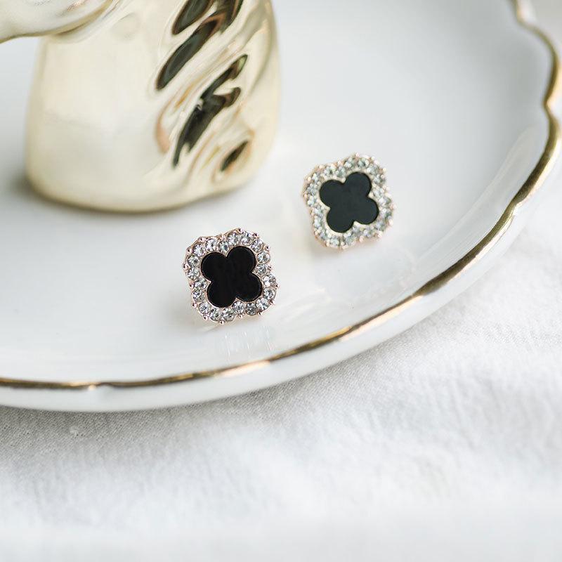 Классические серьги с четырьмя листочками клевера, блестящие модные серьги со стразами, серьги с красным темпераментом, женские серьги