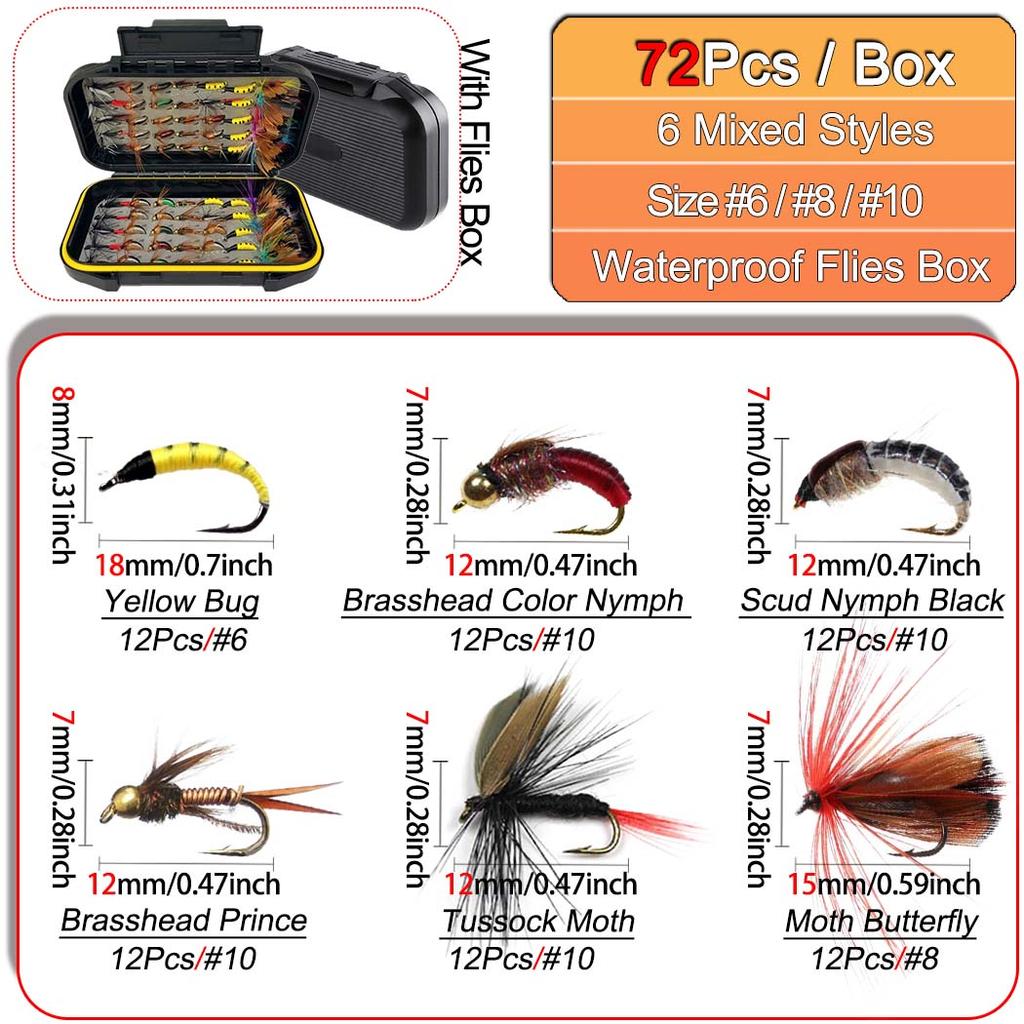 Набор из 24-72 искусственных приманок для насекомых, с сухими/мокрыми мушками, набор мушек для ловли рыбы нахлыстом, ассортимент приманок для ловли форели и окуня с коробкой для мушек