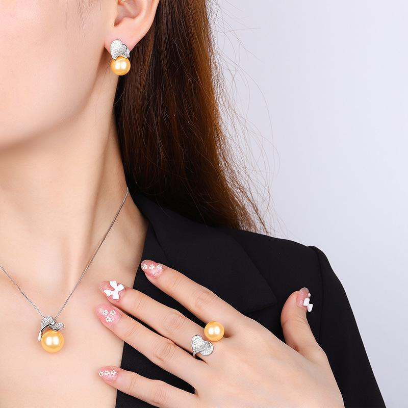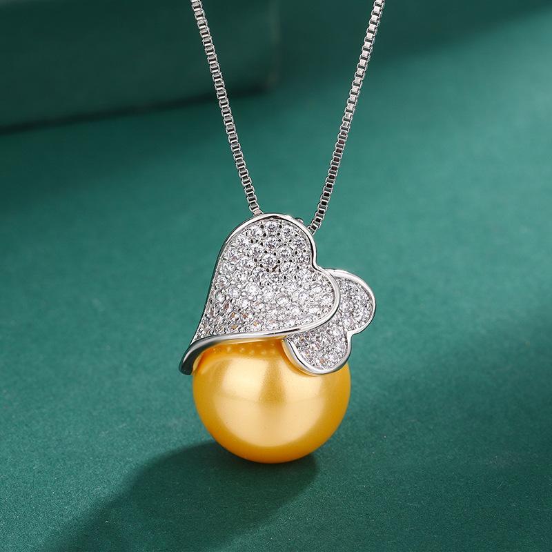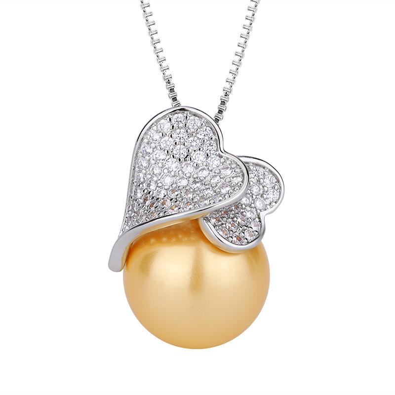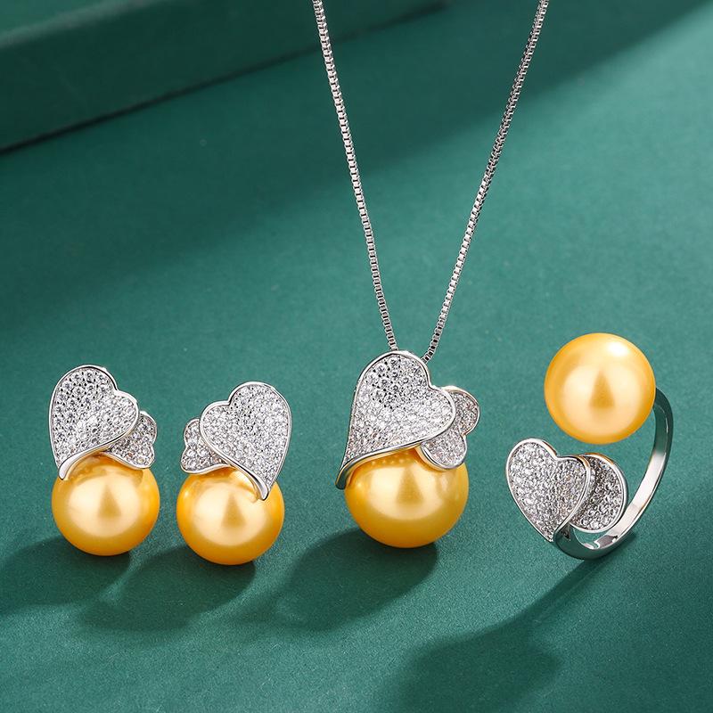 Ювелирные изделия Huamei, жемчужный кулон цвета шампанского, ожерелье с жемчугом Love Zircon, серебряные серьги-гвоздики с иглами и жемчугом S925, кольцо