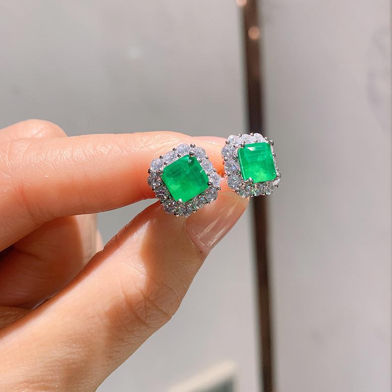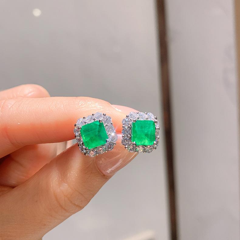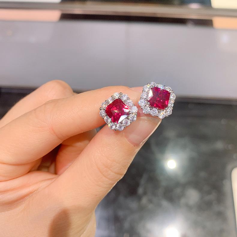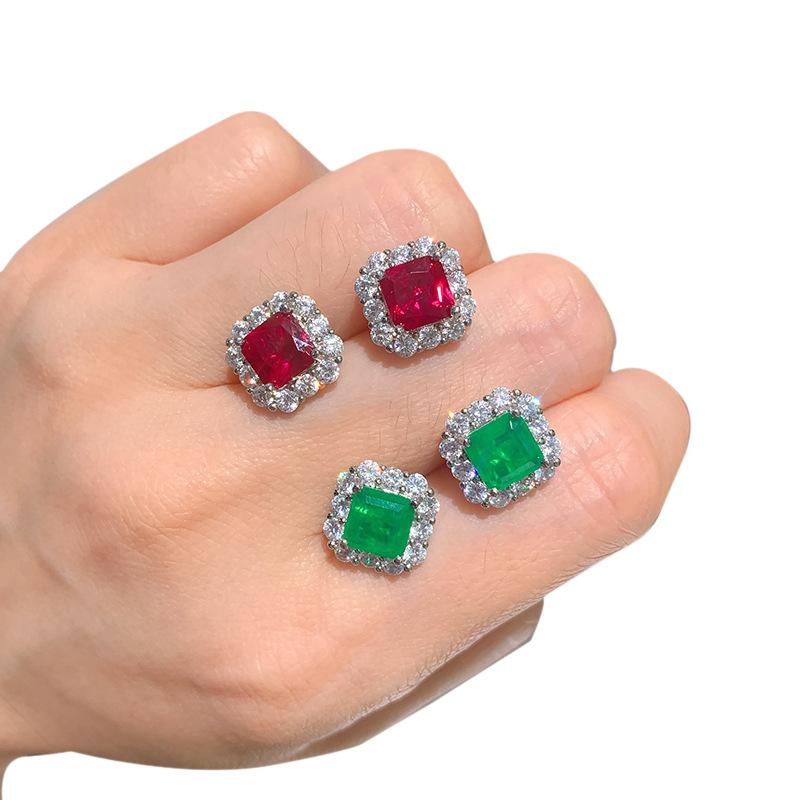 Аксессуары для электронной коммерции, серьги из настоящего золота с медным покрытием и имитацией рубина цвета голубиной крови, серьги с изумрудом и цирконом
