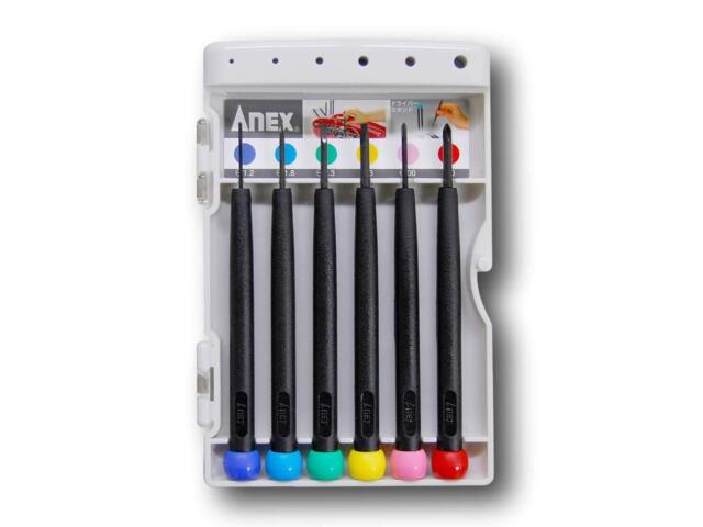 ANEX прецизионная отвертка Плоская головка/Крестовая 6 (+00/+0/-1.2/-1.8/-2.3/-3) №900
