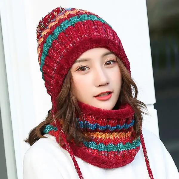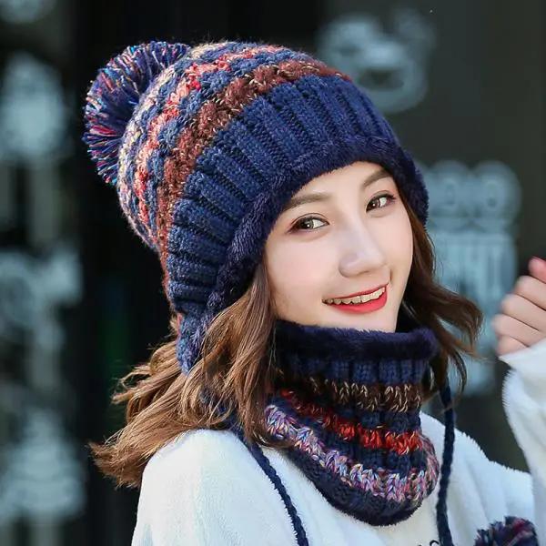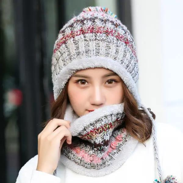 WTEMPO Комплект шапок и шарфов для женщин, осень-зима, симпатичные шерстяные шапки с шарфами, утолщенные, устойчивые к холоду, теплые шапки, вязаные шапки для защиты ушей, шарфы