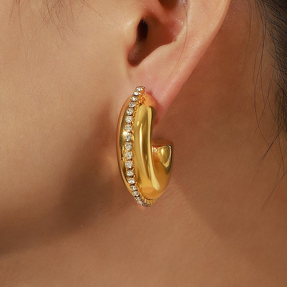 Металлические серьги C-типа в стиле ретро Гонконг, гладкая поверхность, инкрустация цирконом, нишевый дизайн, серьги не выцветают, серьги с покрытием из настоящего золота, женские