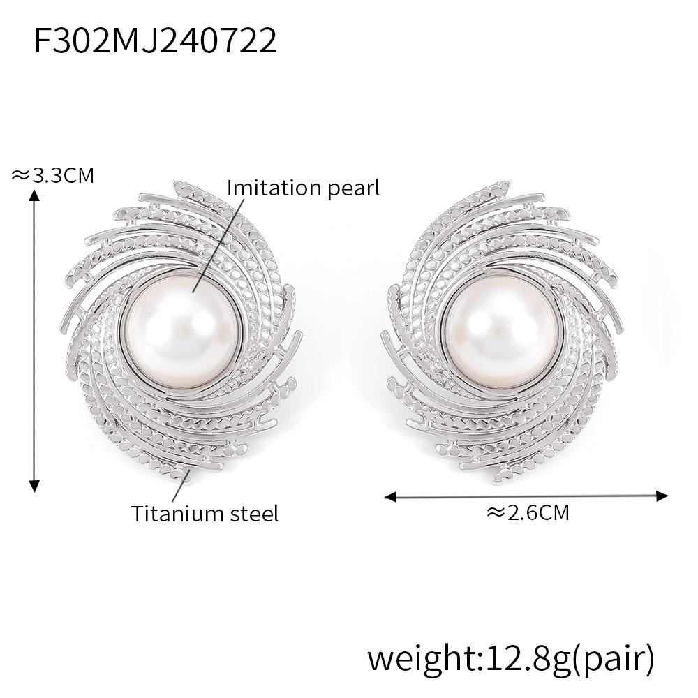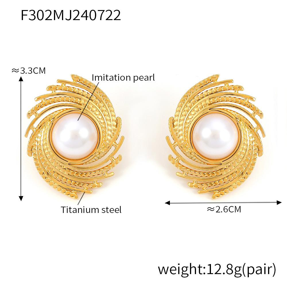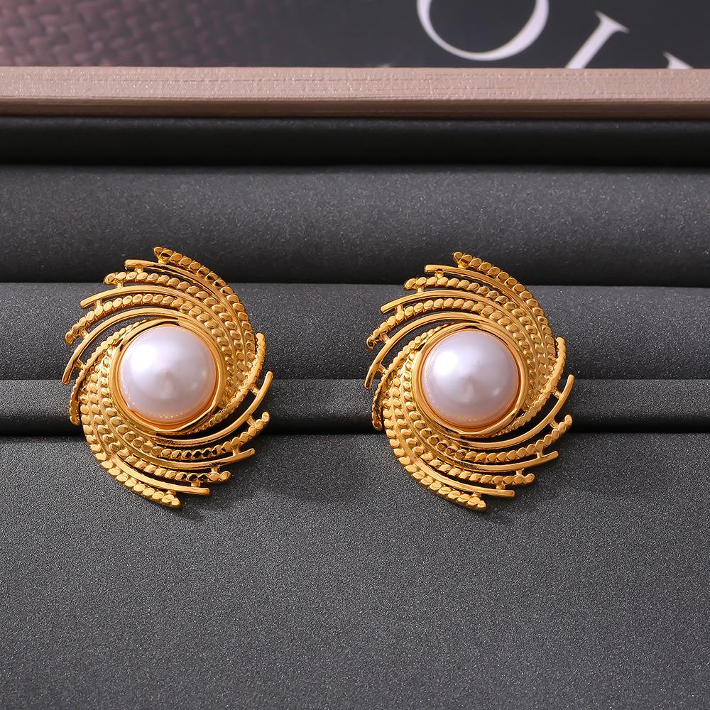 Средневековая текстура плетения спиральная инкрустация искусственный жемчуг серьги легкий роскошный модный дизайн титановая сталь покрытая 18-каратным золотом