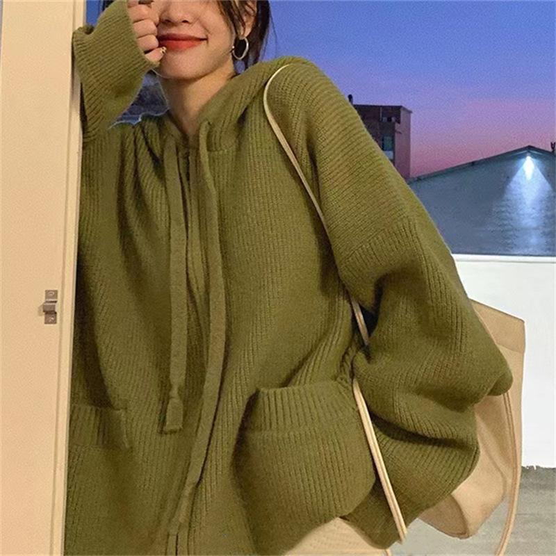 Ленивый ветровой свитер женский дизайн чувство новый осень и зима корейская верхняя одежда с капюшоном и длинными рукавами вязаный кардиган топ прилив — купить товар онлайн с бесплатной доставкой до всему миру!
