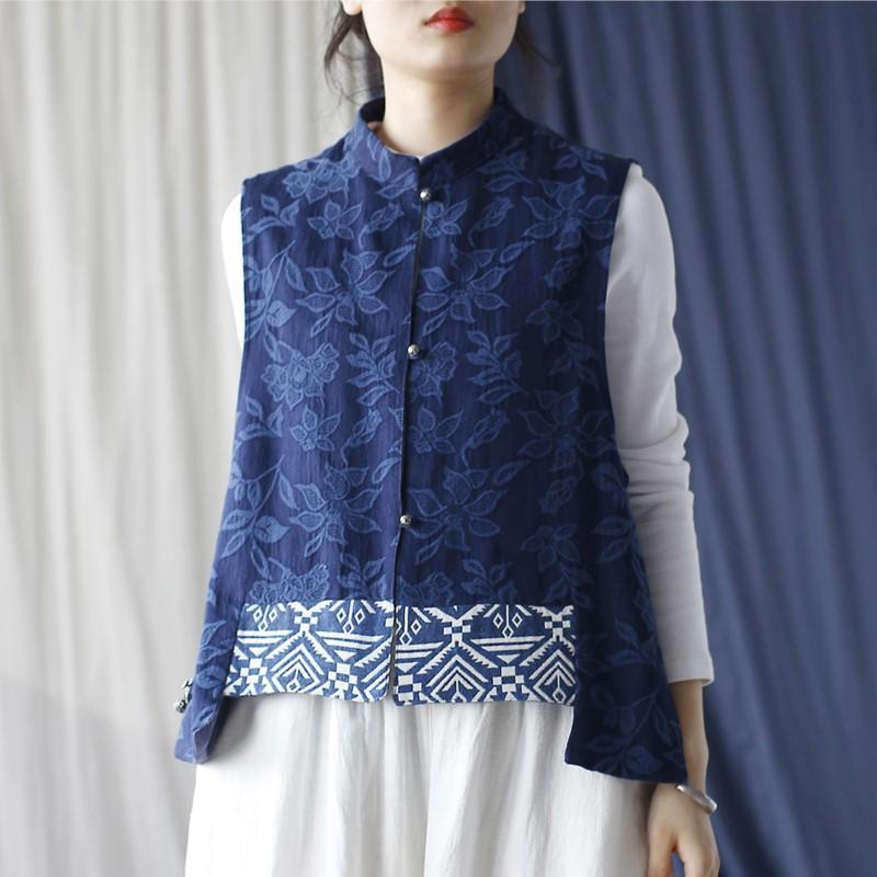 Johnature Женские винтажные жаккардовые темно-синие пуговицы в китайском стиле, осенние жилеты — купить товар онлайн с бесплатной доставкой по всему миру!