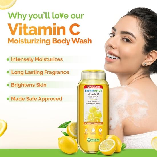 Mamaearth Увлажняющий гель для душа с витамином С и освежающим ароматом лимона для сияния кожи - 275 мл | Глубоко очищает | Интенсивно увлажняет