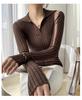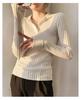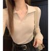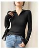 Весенняя облегающая рубашка с V-образным вырезом и длинными рукавами, с внутренней трикотажной подкладкой, модная и простая, в полоску, новый темпераментный свитер для женщин