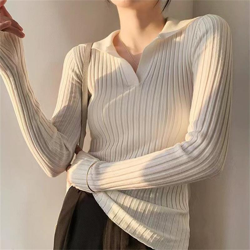 Весенняя облегающая рубашка с V-образным вырезом и длинными рукавами, с внутренней трикотажной подкладкой, модная и простая, в полоску, новый темпераментный свитер для женщин — купить товар онлайн с бесплатной доставкой до всему миру!