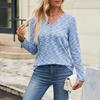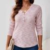 Осенние топы с длинным рукавом футболка повседневная пуговицы V-образный вырез свитера женская одежда