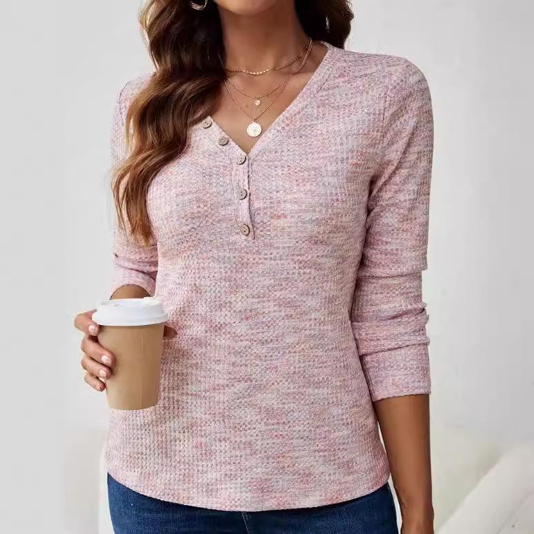 Осенние топы с длинным рукавом футболка повседневная пуговицы V-образный вырез свитера женская одежда — купить товар онлайн с бесплатной доставкой по всему миру!