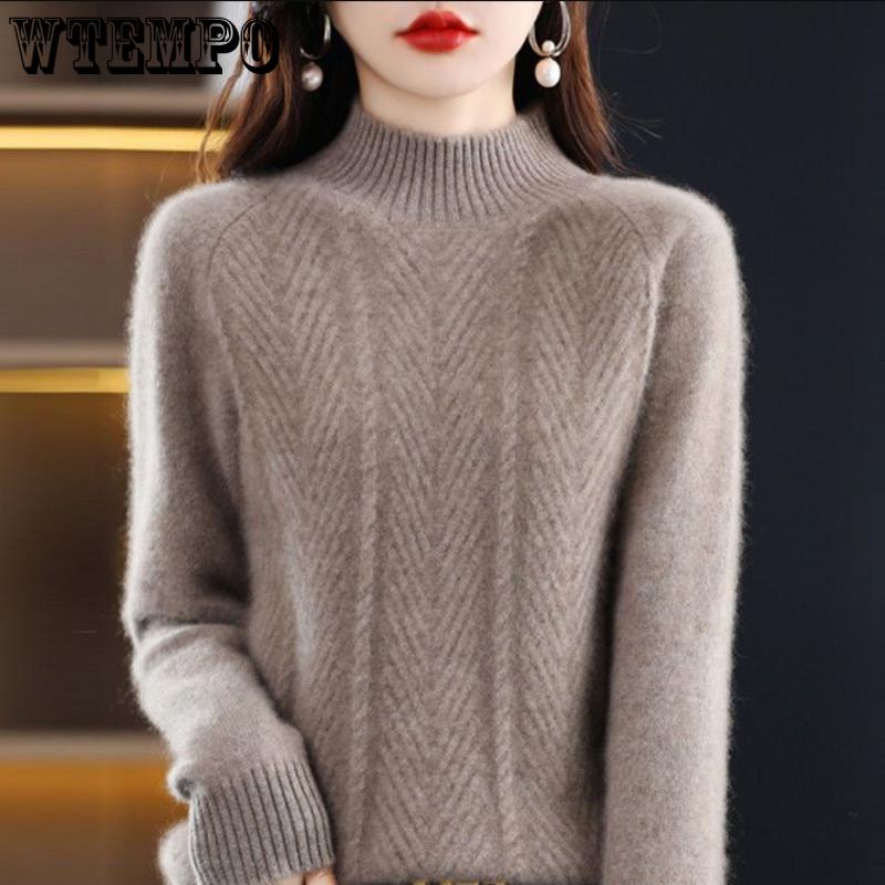 Свитер из чистого кашемира, пуловер, женский осенне-зимний однотонный однотонный свитер с полувысоким воротником и длинным рукавом, вязаный низ, топ — купить товар онлайн с бесплатной доставкой по всему миру!