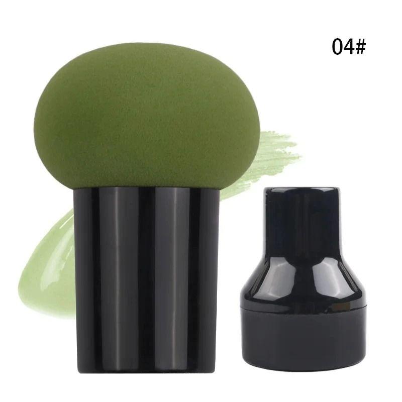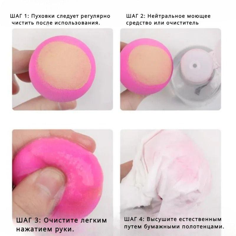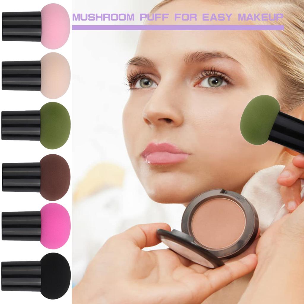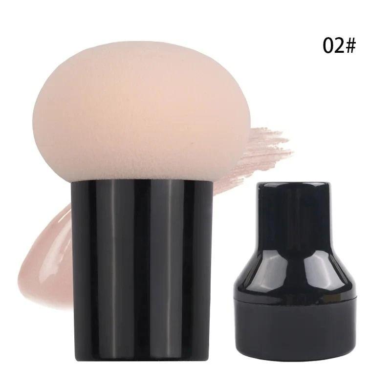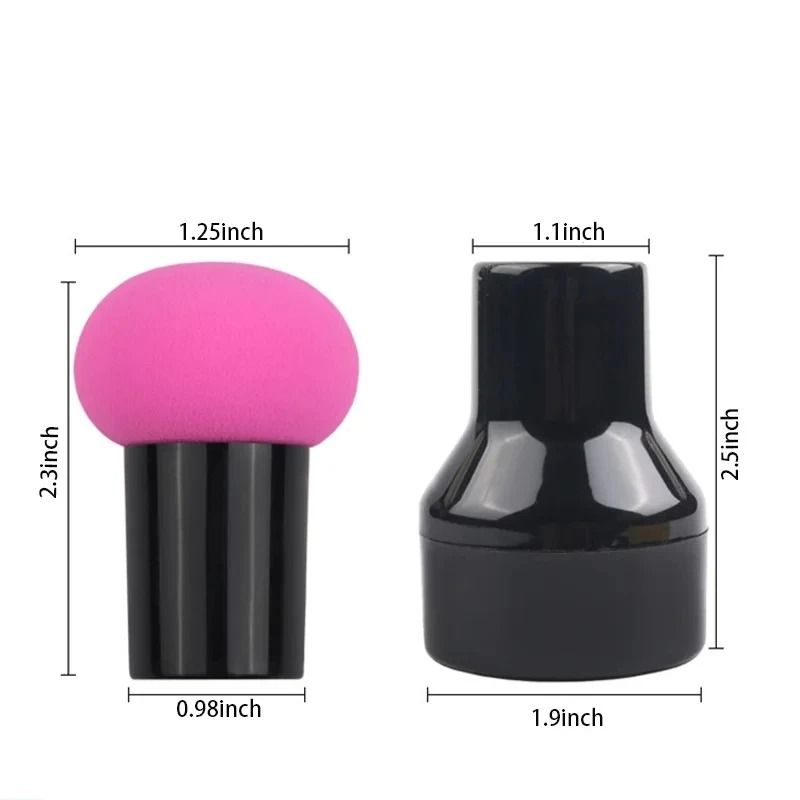 Пуховку в форме гриба можно использовать как во влажном, так и в сухом виде, а воздушная губка для макияжа не разъедает пудру.