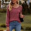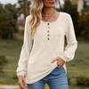 Женская осенняя трикотажная футболка-фонарик с длинным рукавом и круглым вырезом на пуговицах, однотонный ребристый трикотажный пуловер, повседневные топы